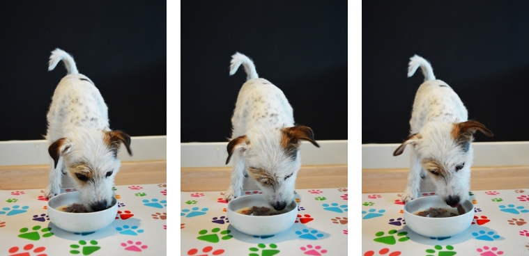 Przez kilka kolejnych dni po wprowadzeniu Pokusy do psiego jadłospisu działo się coś jeszcze dziwniejszego! Nagle po porannym spacerze, Lexi zamiast układać się do porannej drzemki (jedzenie śniadań zdecydowanie nie leży w jej naturze), zajmowała stanowisko pod kuchennym blatem i grzecznie czekała aż miska z pyszną mieszanką trafi pod jej nosek. No może nie do końca grzecznie, bo w czasie kiedy przygotowany miks się studził, zdarzało się jej popiskiwać, jakby chciała powiedzieć „no daj już, daj!”.