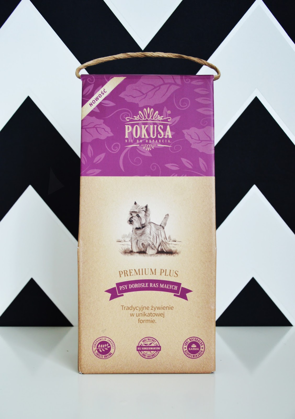 Obecnie do wyboru mamy trzy różne Pokusy Premium Plus – dla psów dużych, dla psów małych oraz dla szczeniąt (a właściwie cztery, bo jest również Pokusa dla kotów!). Do nas trafiła Pokusa przeznaczona dla psów małych, która została stworzona tak, by zminimalizować ryzyko wystąpienia schorzeń związanych z procesem miniaturyzacji.
